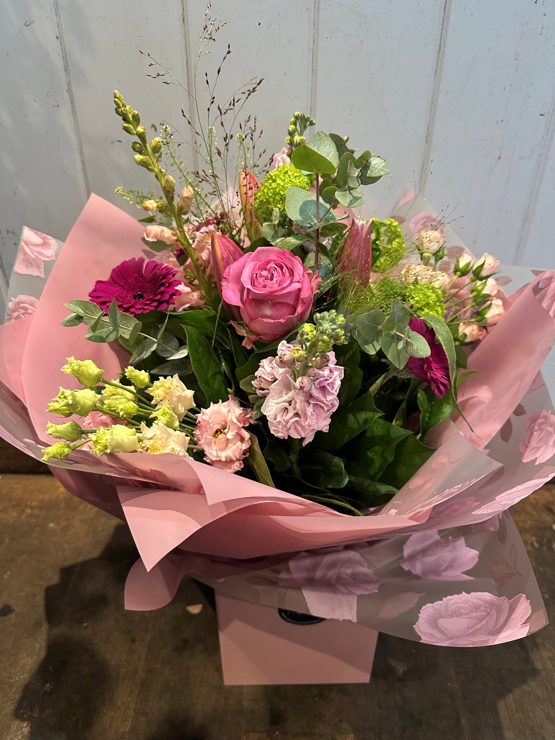 A classic mix of feminine pink flowers. The perfect way to show your appreciation this Mother’s Day.
